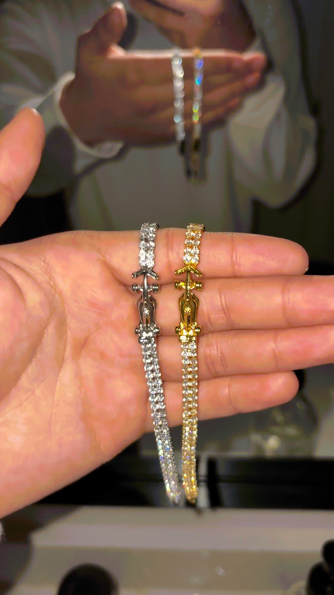The bracelet is water-resistant for everyday use, such as hand washing or light rain. We recommend avoiding prolonged contact with water to preserve its finish and shine.